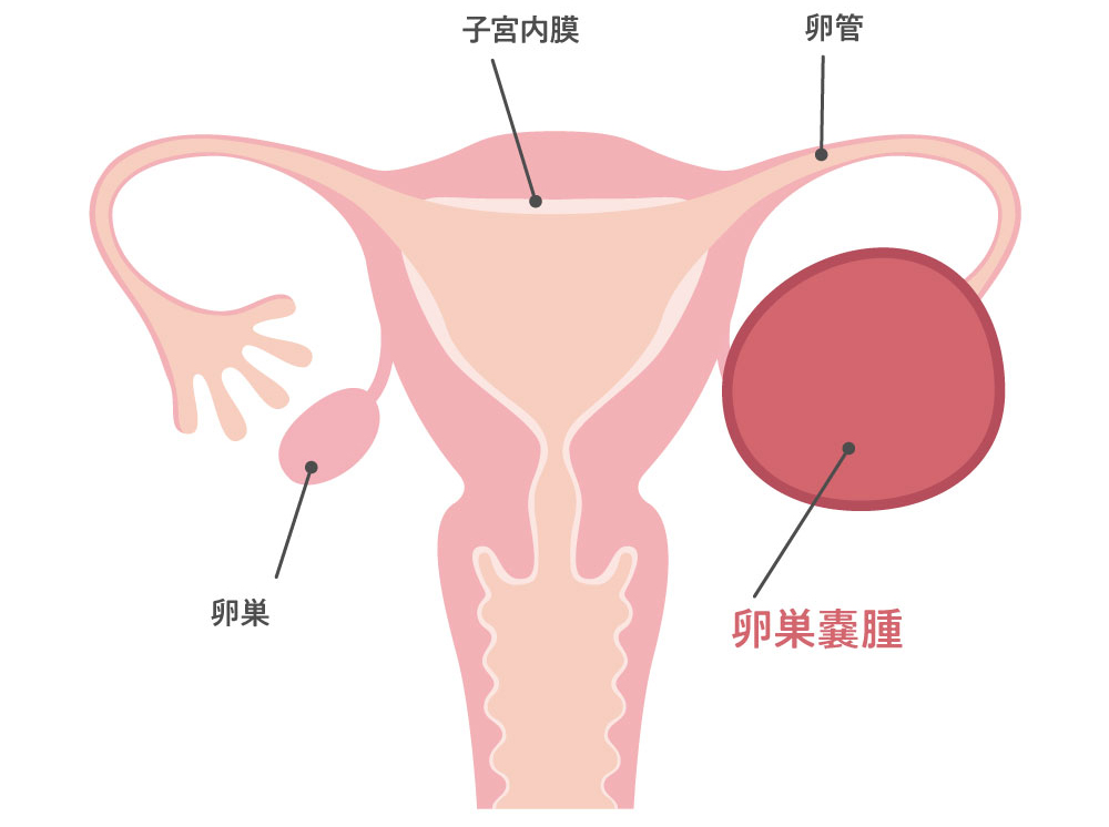 卵巣嚢腫は、卵巣に発生した液状の内容物が入った袋状の病変で、比較的若い方(20~30歳代)に多い良性腫瘍です。 水や粘液が卵巣の袋内にたまる嚢胞腺腫、皮膚や毛髪、歯などが組織に貯まる皮様嚢腫などがあります。 卵巣嚢腫は大きさによっては下腹部痛や下腹部の腫瘤感などの症状が出てきます。とくに皮様嚢腫の場合は茎捻転といって捻じれを起こすことがあり、救急受診となる場合もあります。また、無症状で健康診断や妊娠を契機に偶然発見されることもあります。