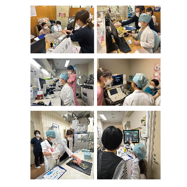 <①受付体験 ②放射線科体験 ③検査科体験 ④診察体験>